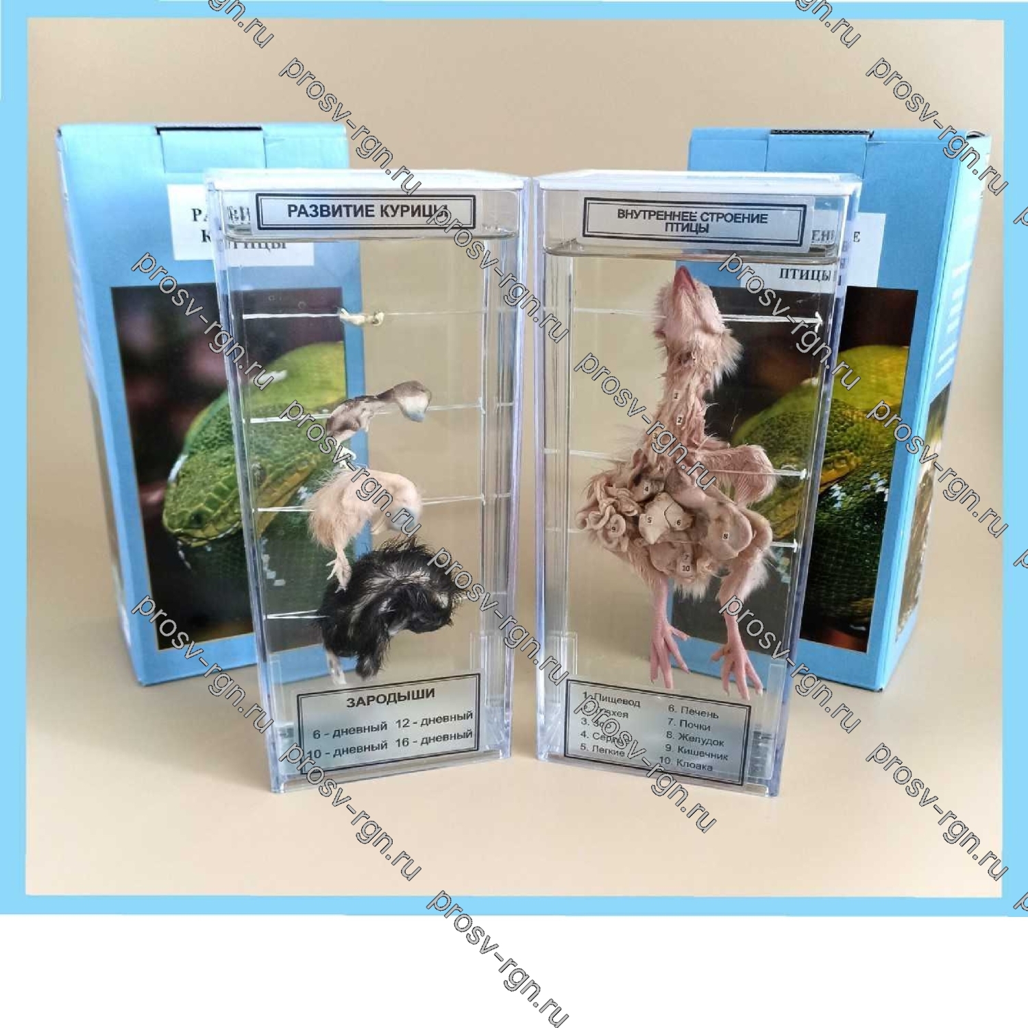 1) Влажный препарат "Внутреннее строение птицы".