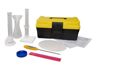 Комплектность: учебное пособие «Комплект для исследования состояния окружающей среды» (автор И.Л. Марголина – 40 страниц – печать офсетная, обложка полноцвет.) – 1 шт., термометр электронный со щупом – 1 шт., устройство для исследования прозрачности воды – 1 шт., цилиндр мерный 50 мл с носиком – 1 шт., колба коническая 100 мл – 1 шт., крышка пластмассовая – 1 шт., воронка – 1 шт., фильтры обеззоленные "Синяя лента" 12,5 см – 1 уп., линейка – 1 шт., карточка 1 "Цветность. Мутность" – 1 шт., карточка 2 "Запах" – 1 шт., руководство по эксплуатации – 1 шт., пластиковый чемоданчик – 1 шт.