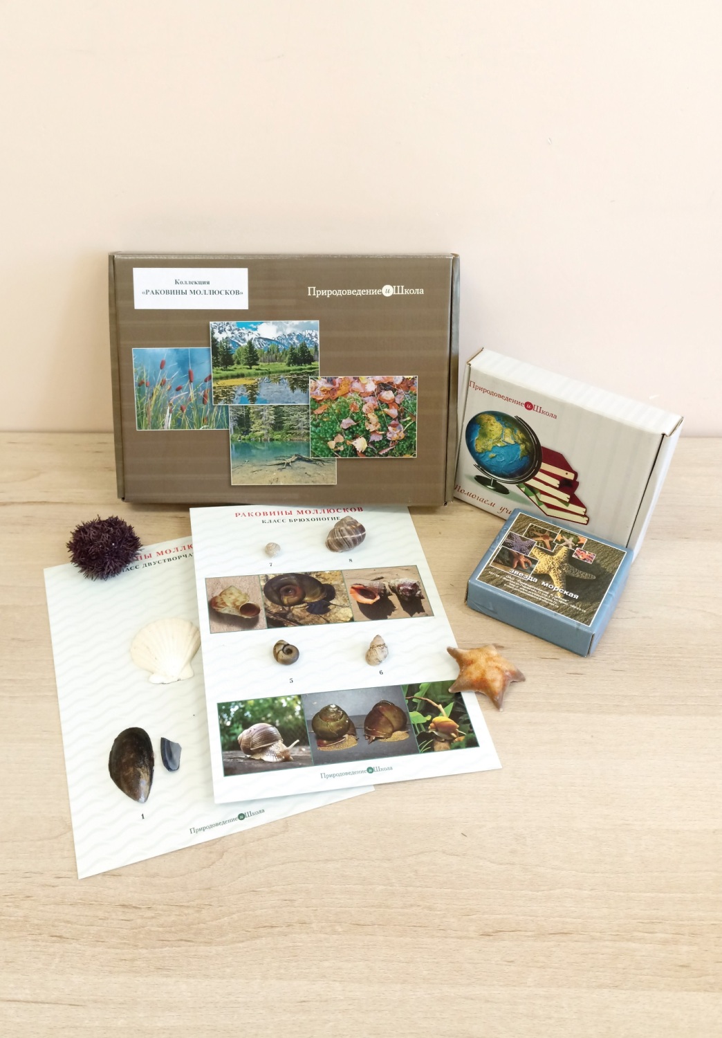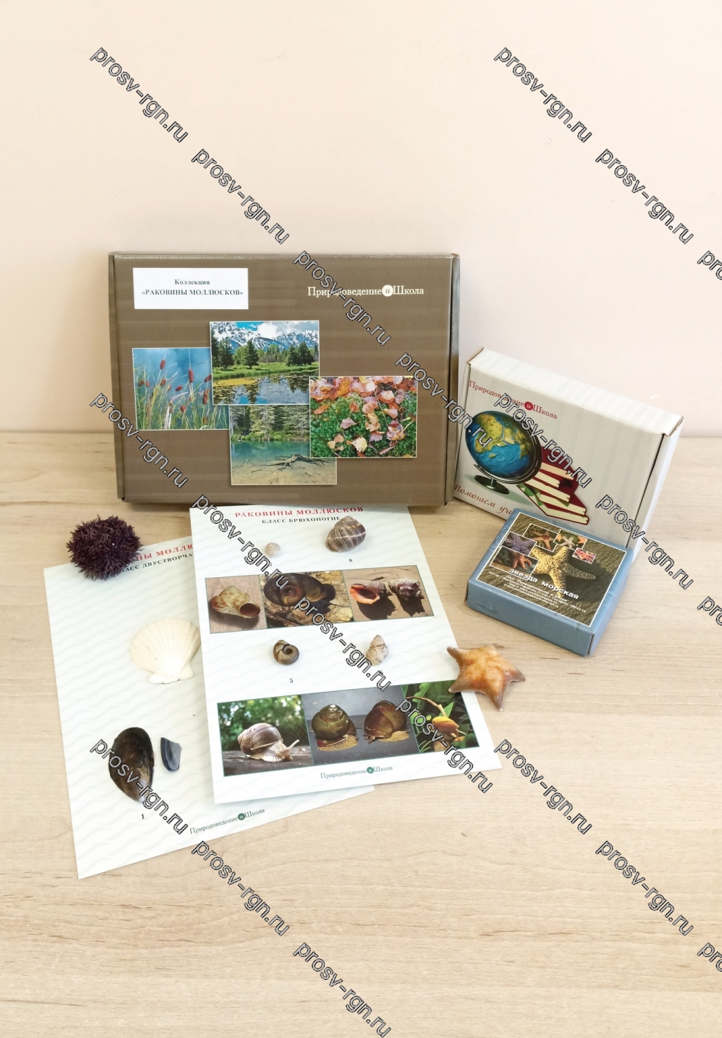 Комплект коллекций, включающий в том числе препарат «Ёж морской», препарат «Звезда морская», Коллекция «Раковины моллюсков»