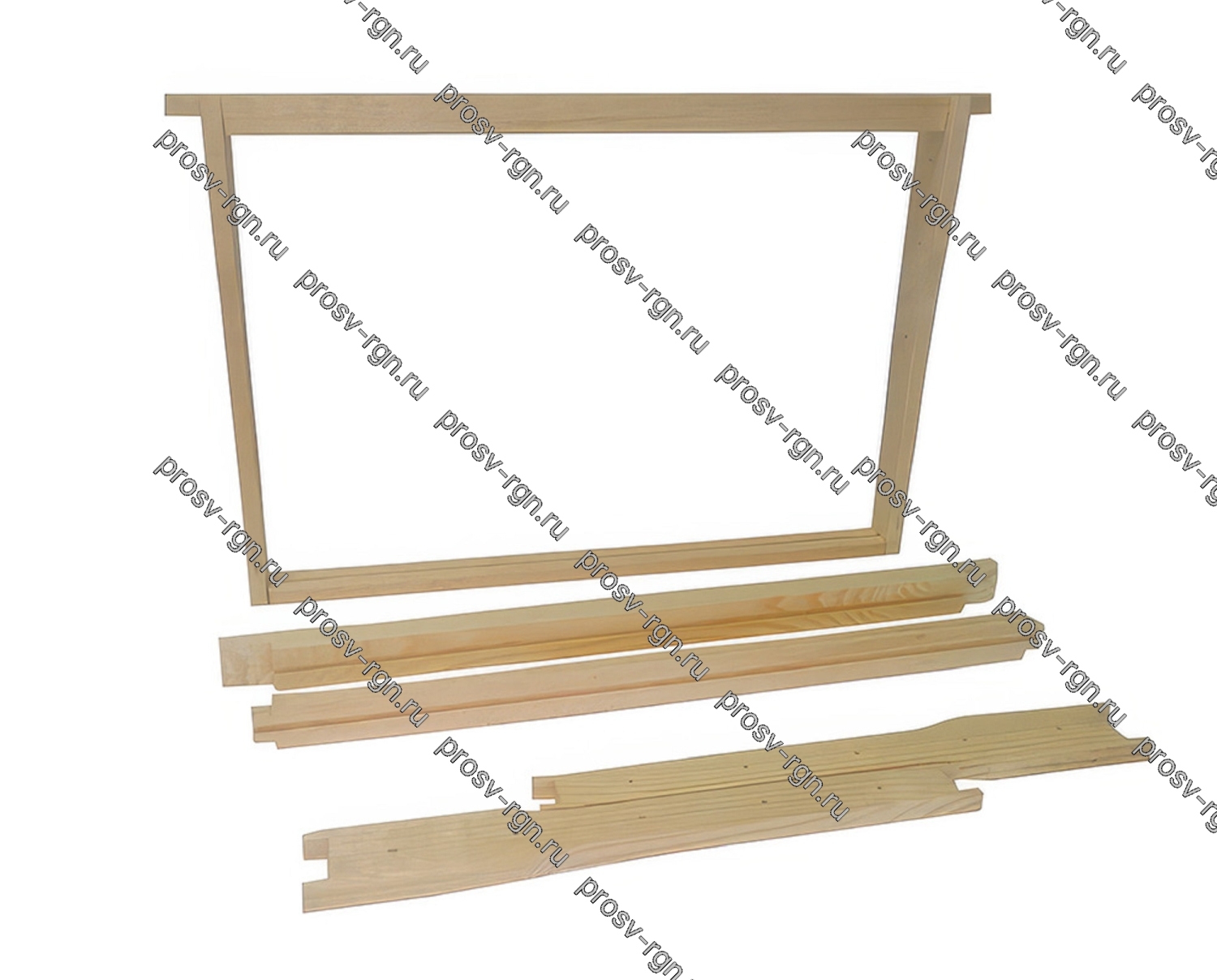Верхний брусок имеет пропил под вощину. Боковые бруски имеют отверстия под проволоку.