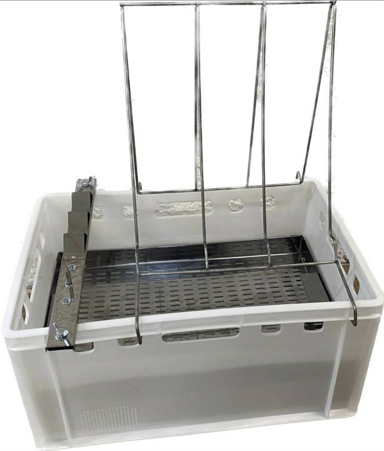 - Перфорированный поддон на ножках (поддон позволяет меду из срезанного забруса стекать в ящик).