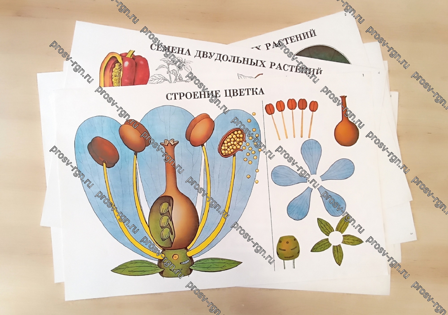 В комплекте представлена 21 таблица по разделу «Растения», по темам «Семя. Строение семени. Условия прорастания семян», «Цветок и плод. Распространение плодов и семян», «Размножение и оплодотворение у цветковых растений», «Вегетативное размножение растений».