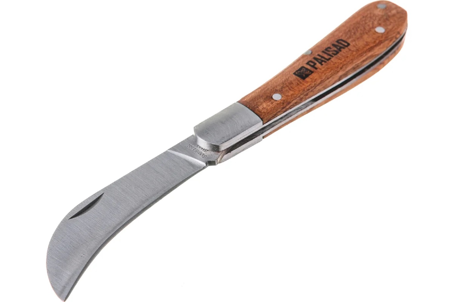 Складной садовый нож , имеет изогнутое лезвие серповидной формы.
