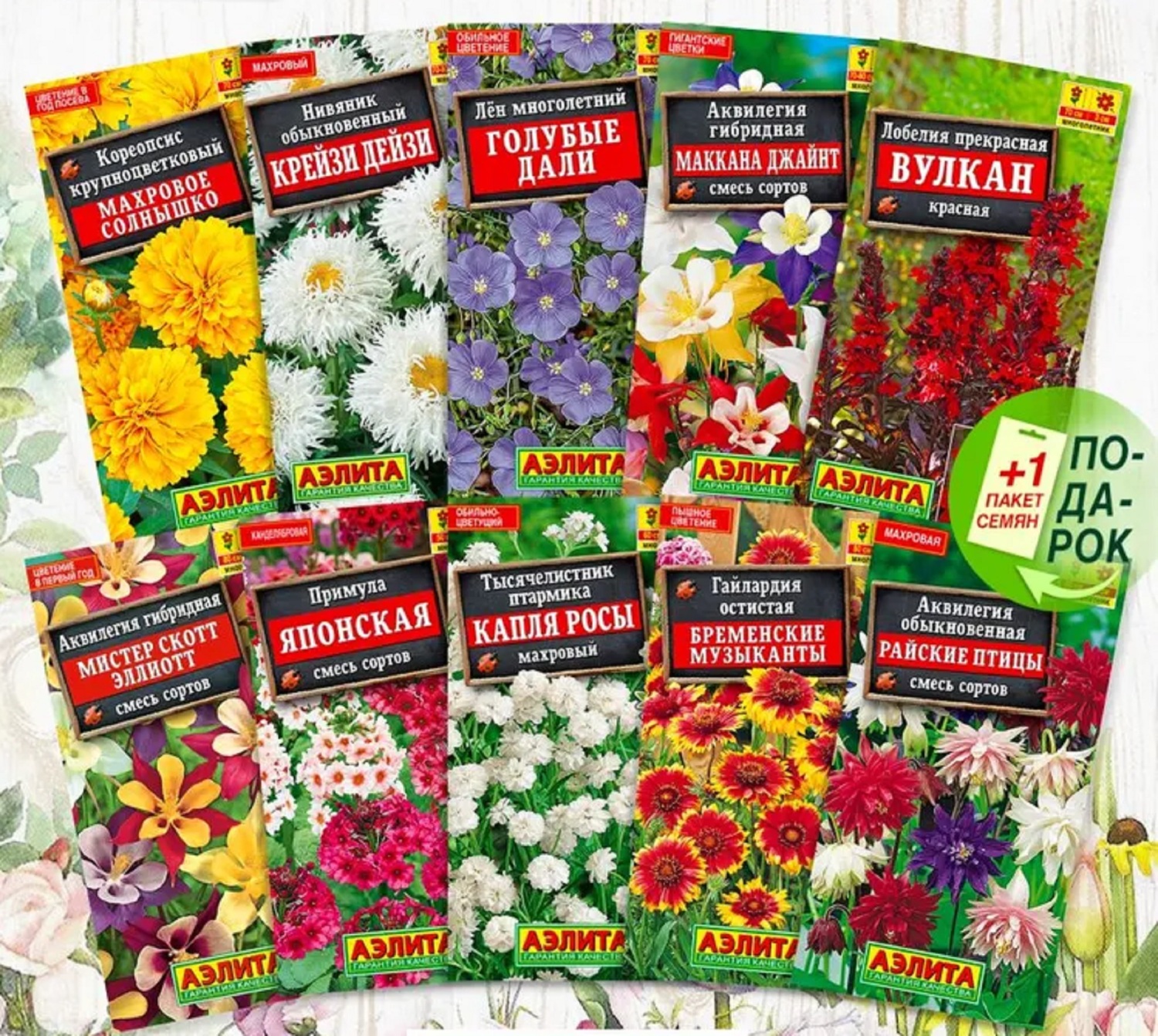 Комплект семян цветов многолетних, в наборе 10 сортов.