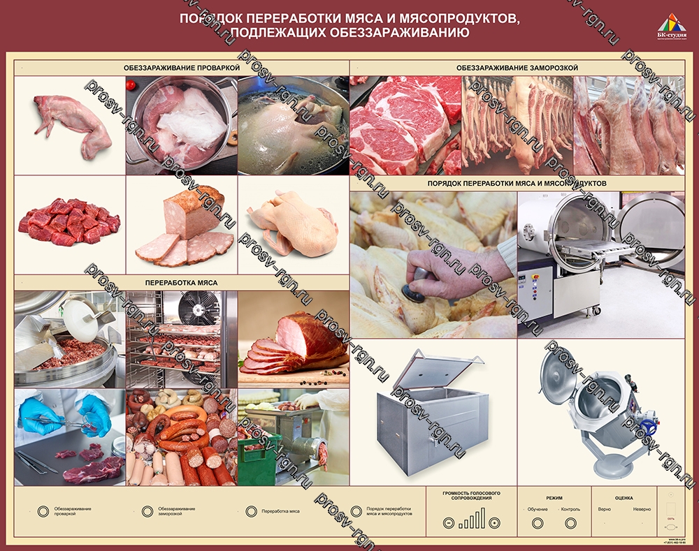 Стенд электрифицированный «Порядок переработки мяса и мясопродуктов, подлежащих обеззараживанию»