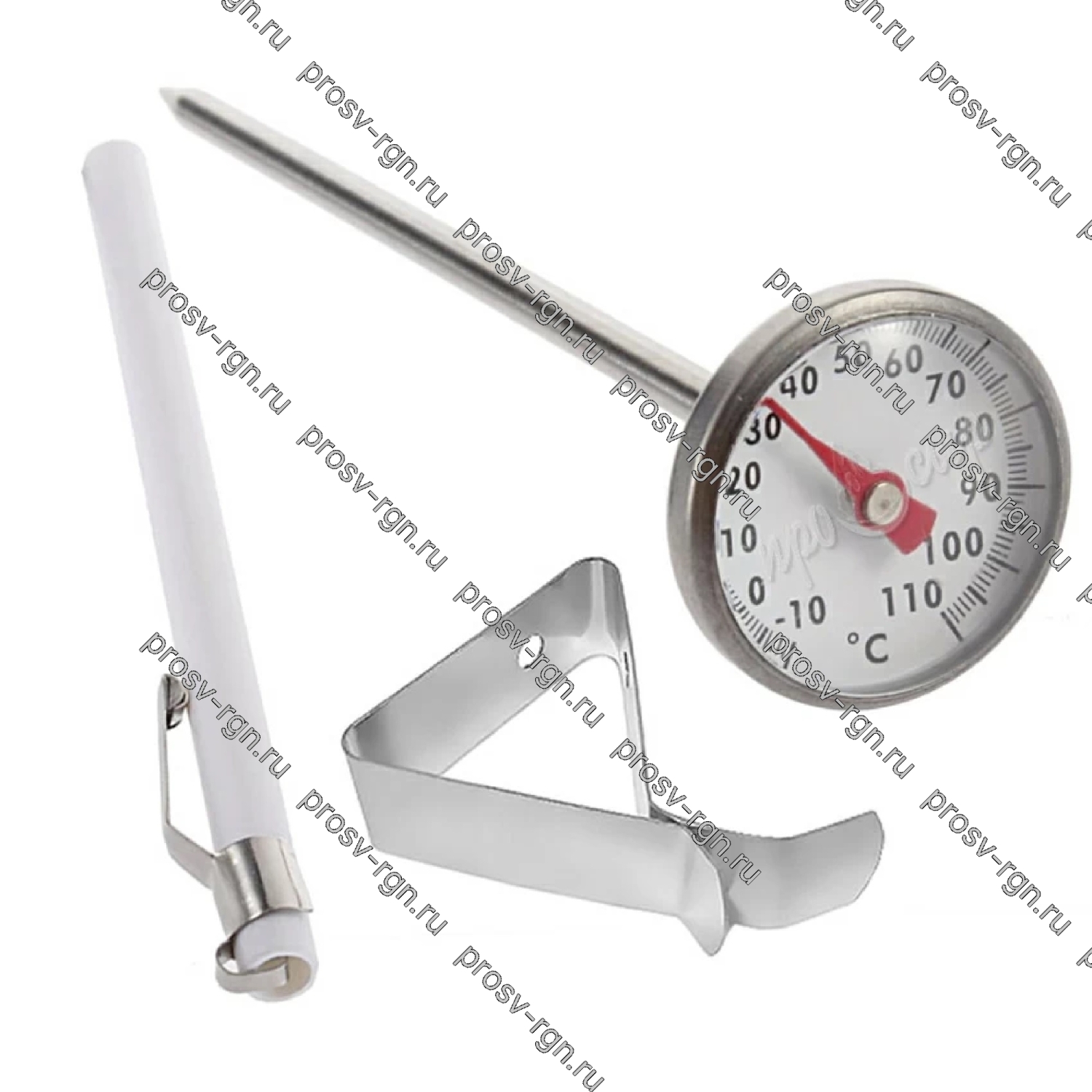 Термометр для молока с держателем позволяет его использовать в закрепленном виде на краю кастрюли.
