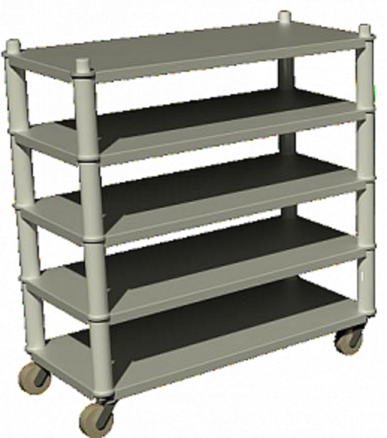 Стеллаж на колесах, полипропилен (1400х650х1260 мм). Полок - 5 шт, максимальная нагрузка на полку - 100 кг.