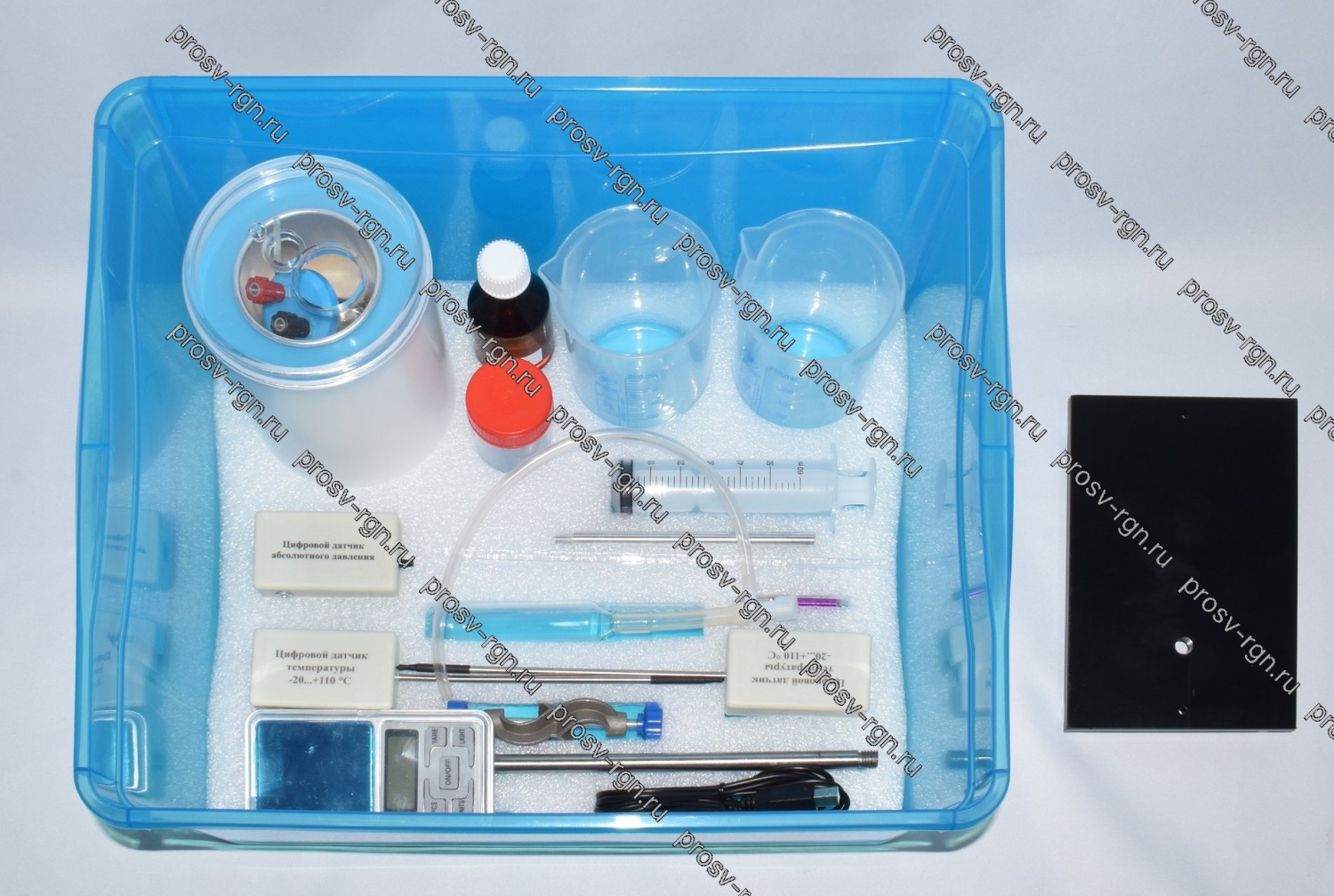 Набор для практикума по молекулярной физике предназначен для выполнения 3 работ по тепловым явлениям и газовым законам.