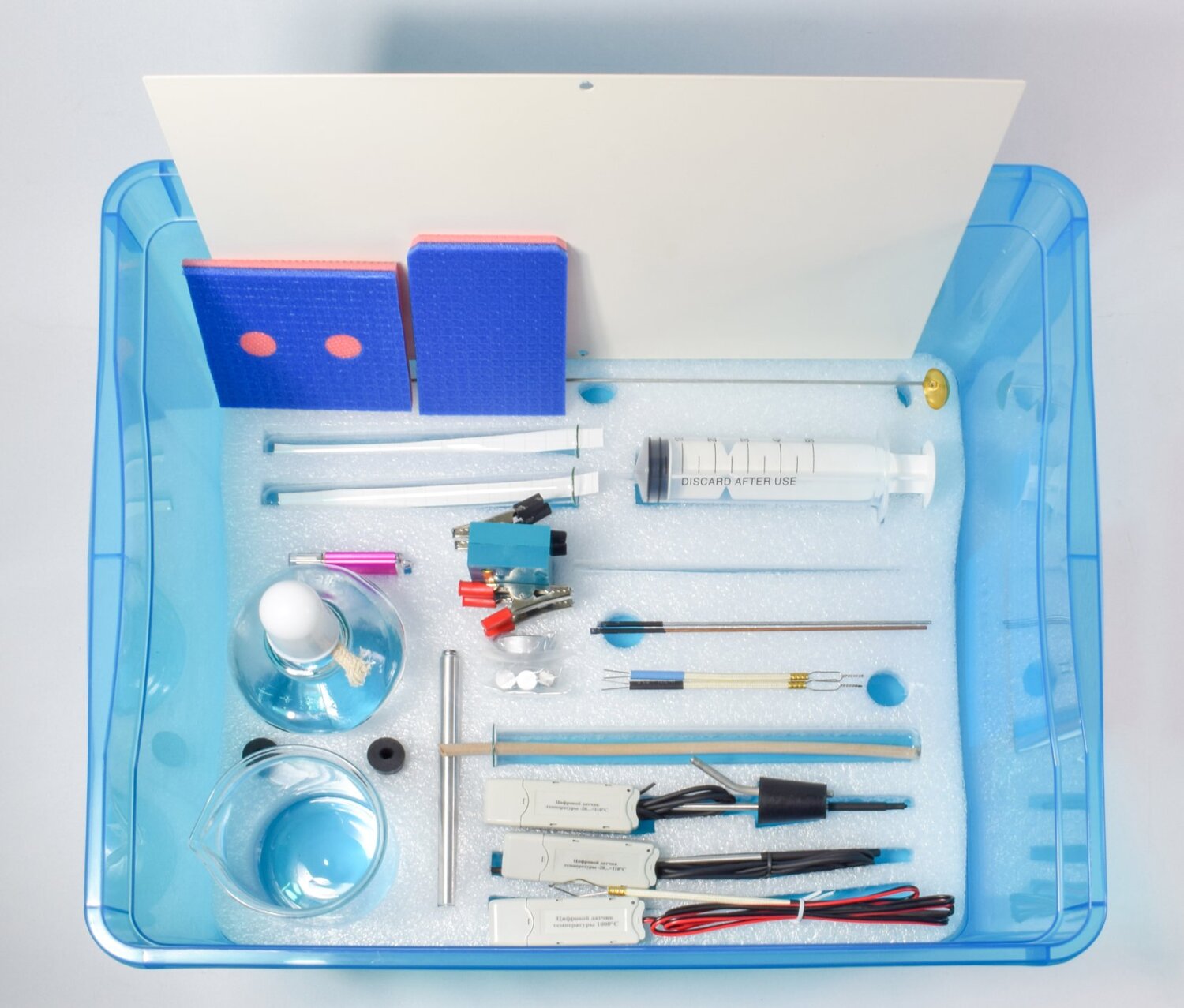 Набор предназначен для проведения опытов по изучению тепловых явлений, законов молекулярно-кинетической теории и термодинамических начал с использованием цифровых датчиков температуры.