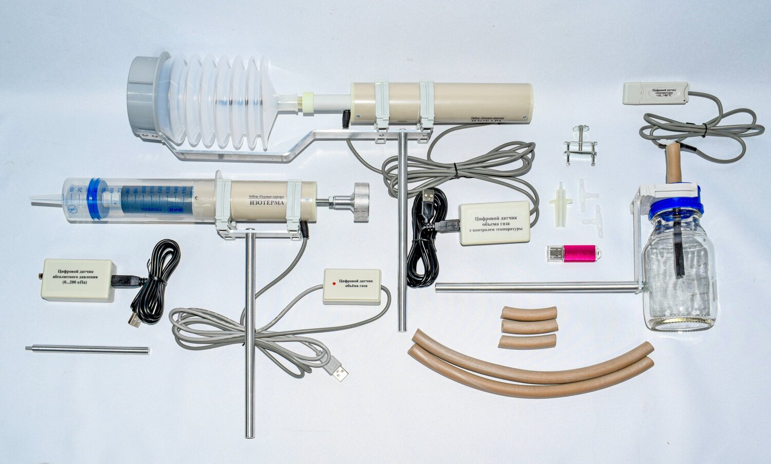 Набор демонстрационный предназначен для демонстрации основных закономерностей, изучаемых по теме «Молекулярная физика» курса физики базового и профильного уровней полной средней школы, знакомства учащихся с такими понятиями, как изопроцессы в идеальном газе, работа газа, циклический процесс, насыщенный пар.