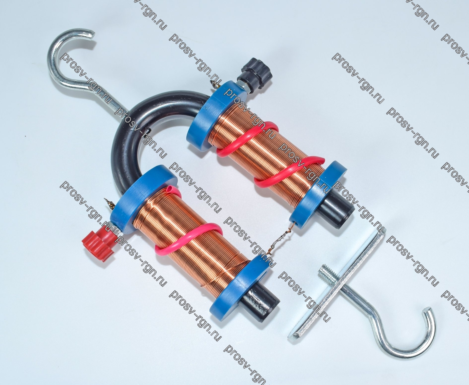 Электромагнит разборный служит для демонстрации подъемной силы электромагнита и его устройства. Сердечник электромагнита подковообразной формы изготовлен из мягкой стали. Для закрепления на штативе в сердечник ввернут крючок. На сердечник надеты две одинаковые катушки, намотанных на пластмассовые каркасы, на которых установлены зажимы для подсоединения источника питания.