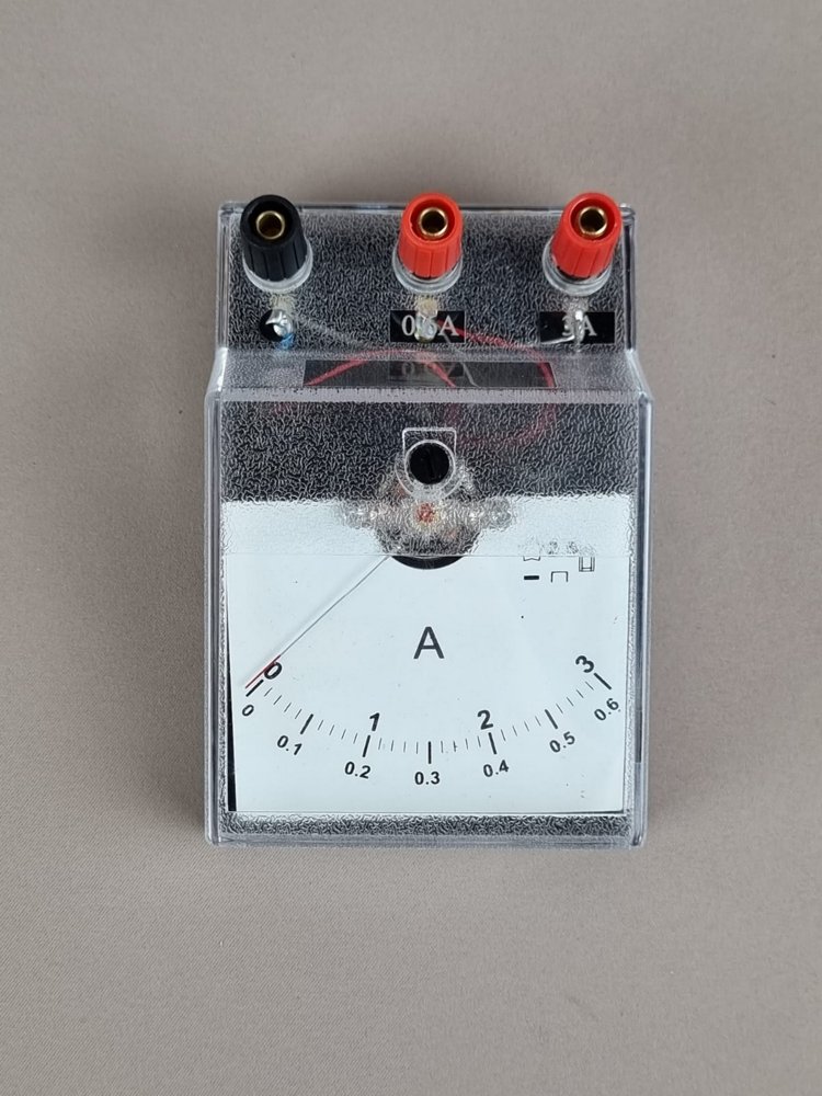 Амперметр предназначен для измерения в цепях постоянного тока в пределах от 0 до 3 А, с ценой деления шкалы 0,1 А.