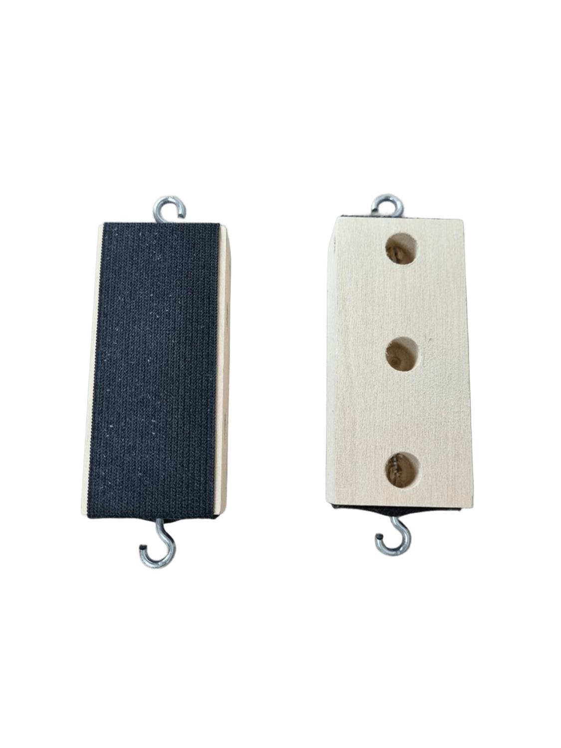 В составе 2 бруска. Брусок имеет два крючка для динамометра и отверстия для установки грузов.