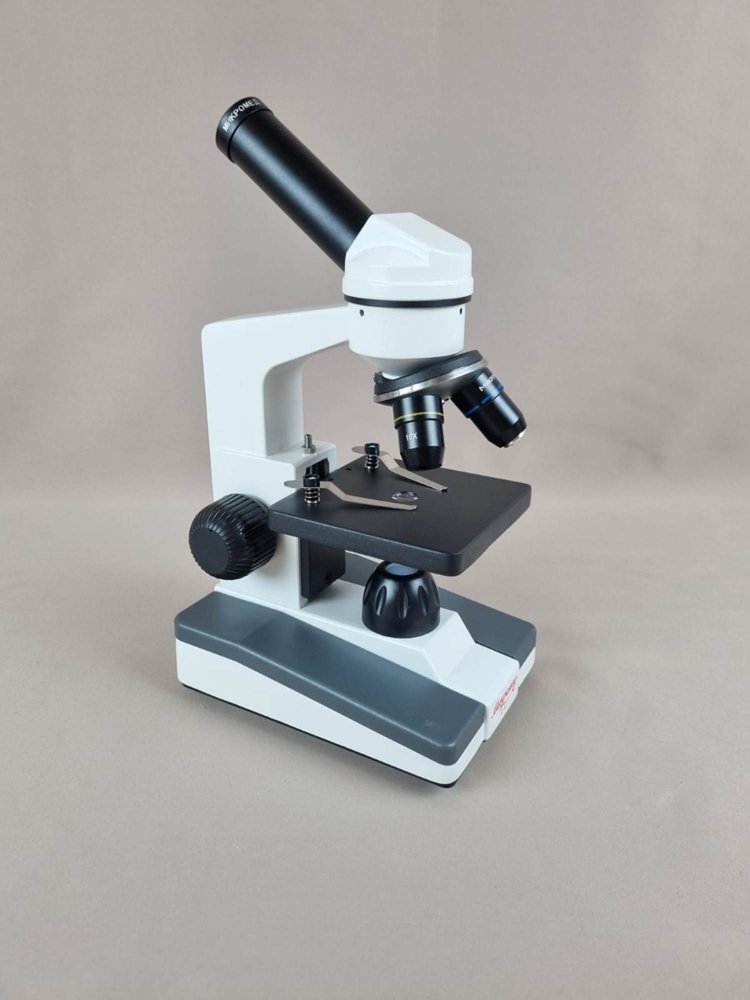 Обеспечивает увеличение в диапазоне от 80 до 800 крат; Визуальная насадка - монокулярная; Угол наклона визуальной насадки 45 град.; Увеличение окуляра 20 крат; Объективы 4x/0,1; 10x/0,25; 40x/0,65; Предметный столик 95x95 мм.; Конденсорное устройство диск с набором из 6 диафрагм; имеет источник света - тип LED; Источник питания - батарейки типа AA.