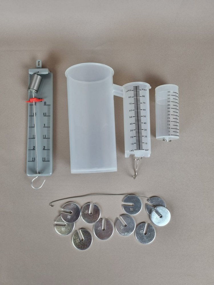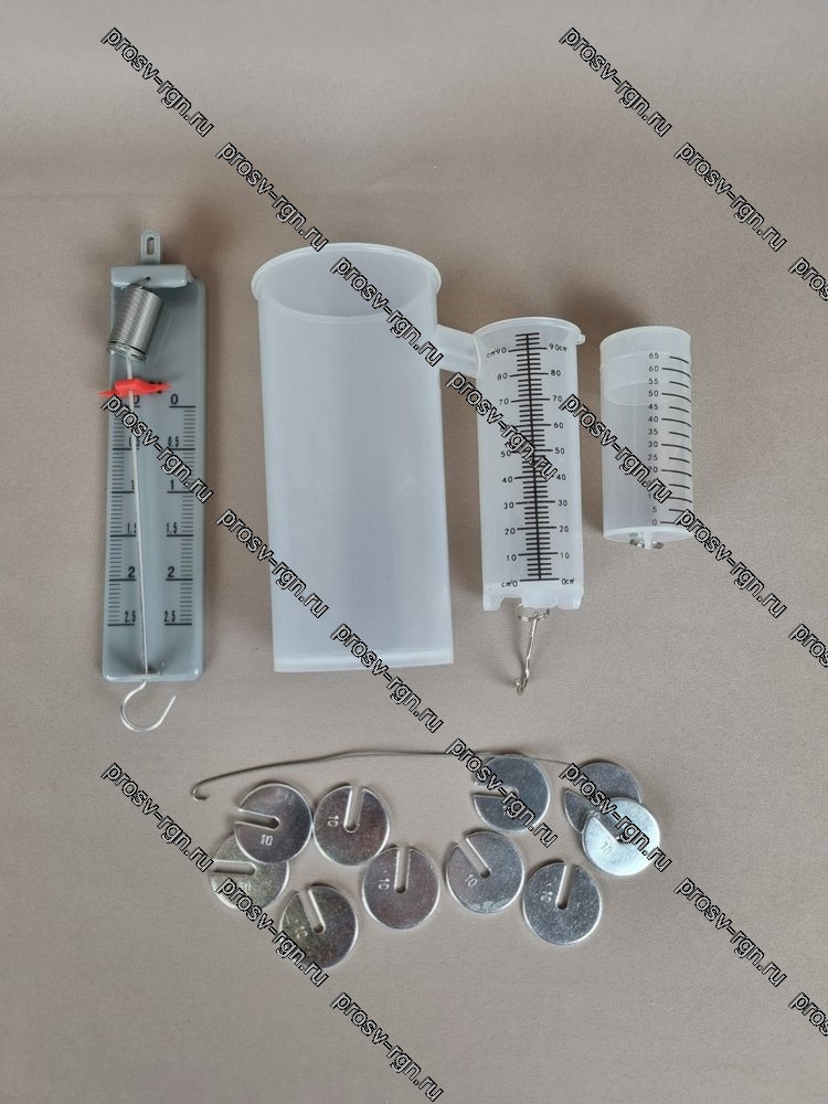 Прибор предназначен для использования в общеобразовательных учреждениях на уроках физики, для демонстрации явления выталкивания жидкостью погруженного в него тела и измерения величины выталкивающей силы (силы Архимеда). Комплектность: Динамометр пружинный - 1 шт.; Ведерко - 1 шт.; Стакан отливной - 1 шт.; Стакан мерный - 1 шт.; Груз 10 г - 10 шт.; Дуга с крючками - 1 шт.