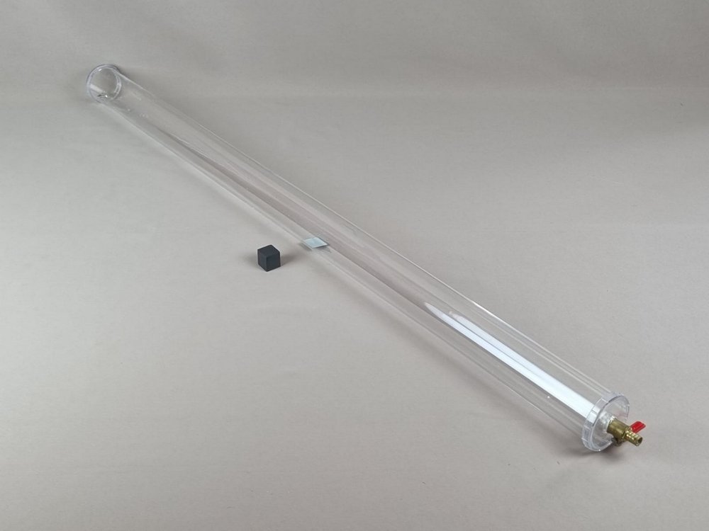 Прибор предназначен для демонстрации падения различных тел в разреженном воздухе. Прибор выполнен в виде трубки из прозрачного материала длиной 1 м. и снабжен краном. Наружный диаметр трубки 50 мм.