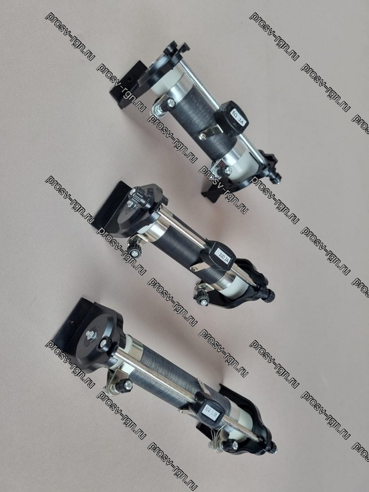 В состав комплекта входят три ползунковых реостата: Реостат 5 Ом; Реостат 20 Ом; Реостат 50 Ом. Реостаты состоят из следующих основных частей: керамической трубы, на наружной поверхности которой помещена обмотка сопротивления с двумя зажимными клеммами; двух стоек из пластмассы; стяжного болта, скрепляющего стойки, одновременно являющегося направляющим стержнем, вдоль которого по обмотке сопротивления перемещается ползунок с контактами. На одном конце стержня установлена зажимная клемма.