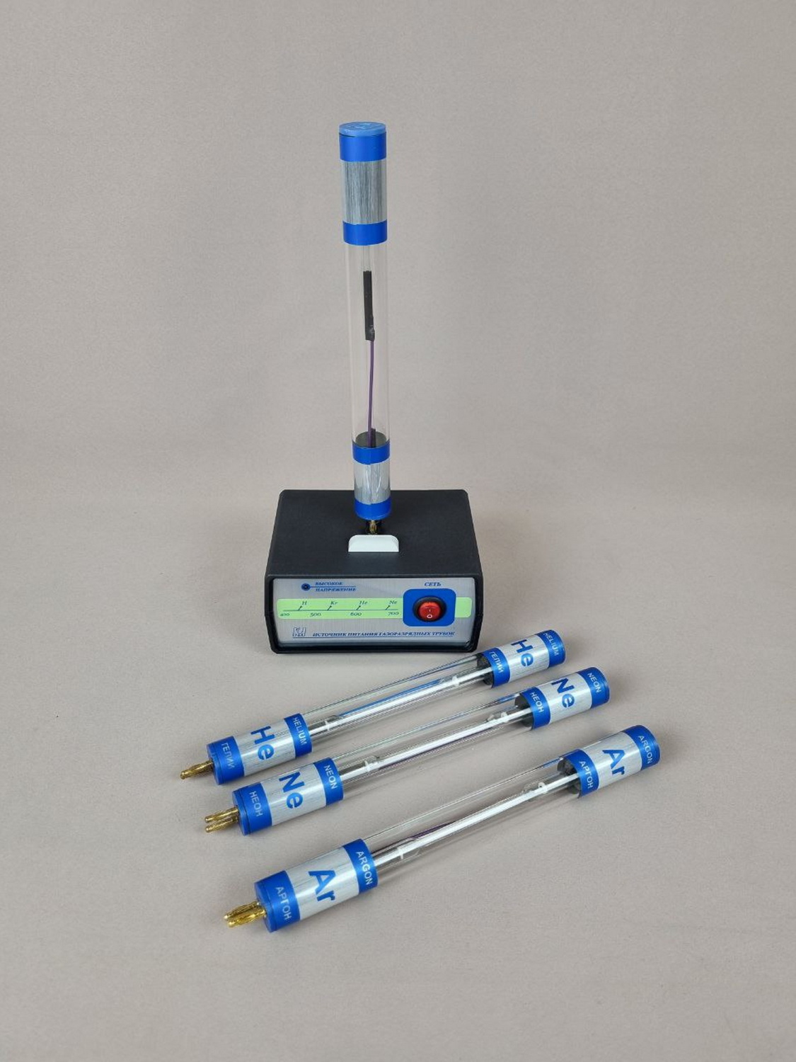 Набор предназначен для исследования спектра, определения длин световых волн газов, а также для визуальных демонстраций линейчатых спектров разряженных газов. Источник питания предназначен для совместной работы со спектральными трубками: "Неон","Гелий", "Аргон", "Криптон". Источник питания имеет защиту от неправильного включения спектральных трубок. Без установленной трубки, источник питания не выдает питающее напряжение на контактные разъемы. Напряжение питания, В/Гц: 220/50. В комплект поставки входят: Набор трубок (гелий, неон, аргон, криптон); источник питания газоразрядных трубок.