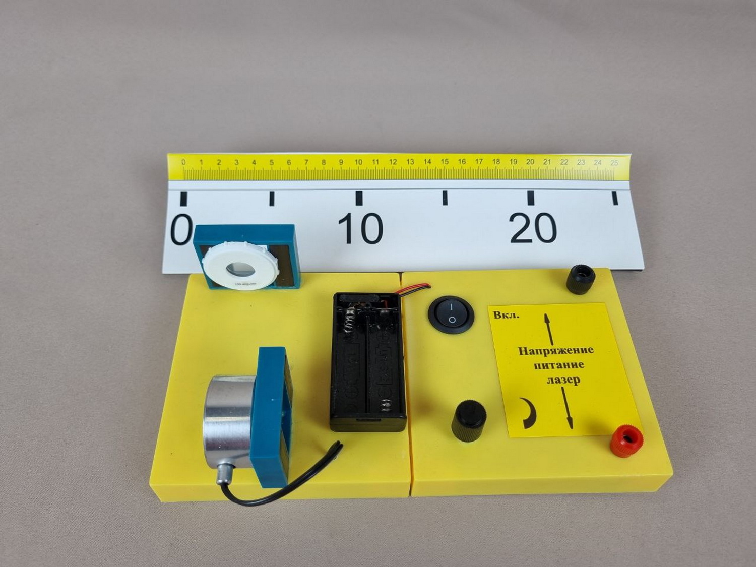 Набор предназначен для определения длины волны излучения полупроводникового лазера и постоянной Планка. Состав: Платформа с полупроводниковым лазером и источником питания; Дифракционная решетка 150 штр./мм; Линейка с магнитами.
