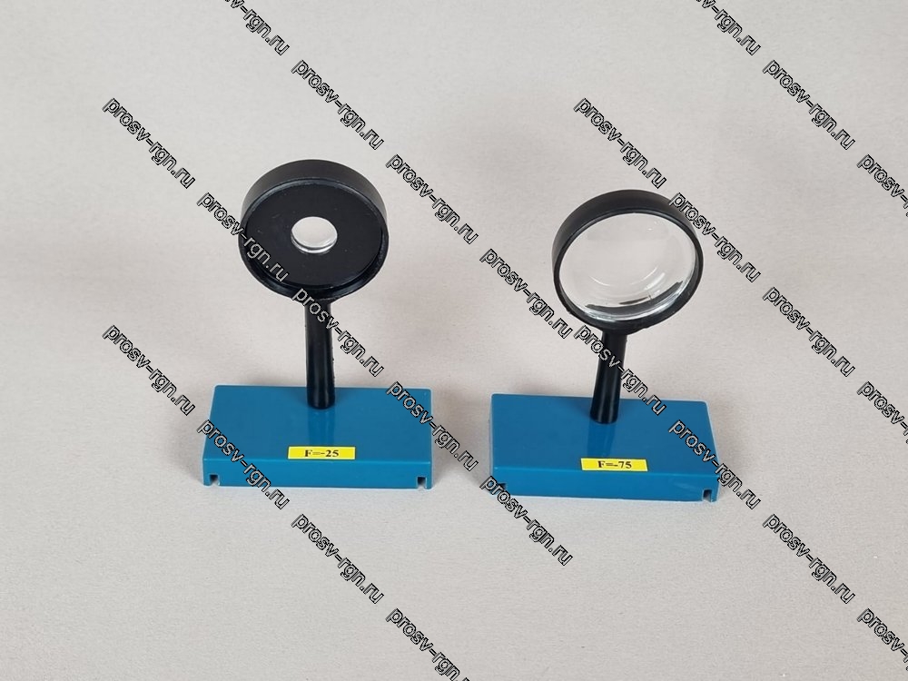 Набор рассеивающих линз на подставке (различной оптической силы)