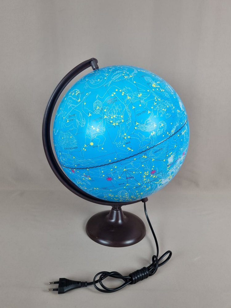 Предназначен для использования в общеобразовательных учреждениях на уроках астрономии. На карте обозначены звезды, созвездия и их названия. Диаметр 32 см. Оснащен подсветкой, нанесены звезды, обозначены созвездия и их названия.