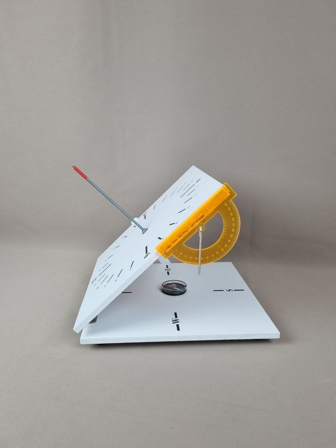 Солнечные часы предназначены для ознакомления с солнечным временем. Комплектность: циферблат на основании – 1 шт., стержень со стрелкой – 1 шт., транспортир с отвесом – 1 шт., компас – 1 шт. Циферблат снабжен механизмом, позволяющим менять угол его наклона к основанию.