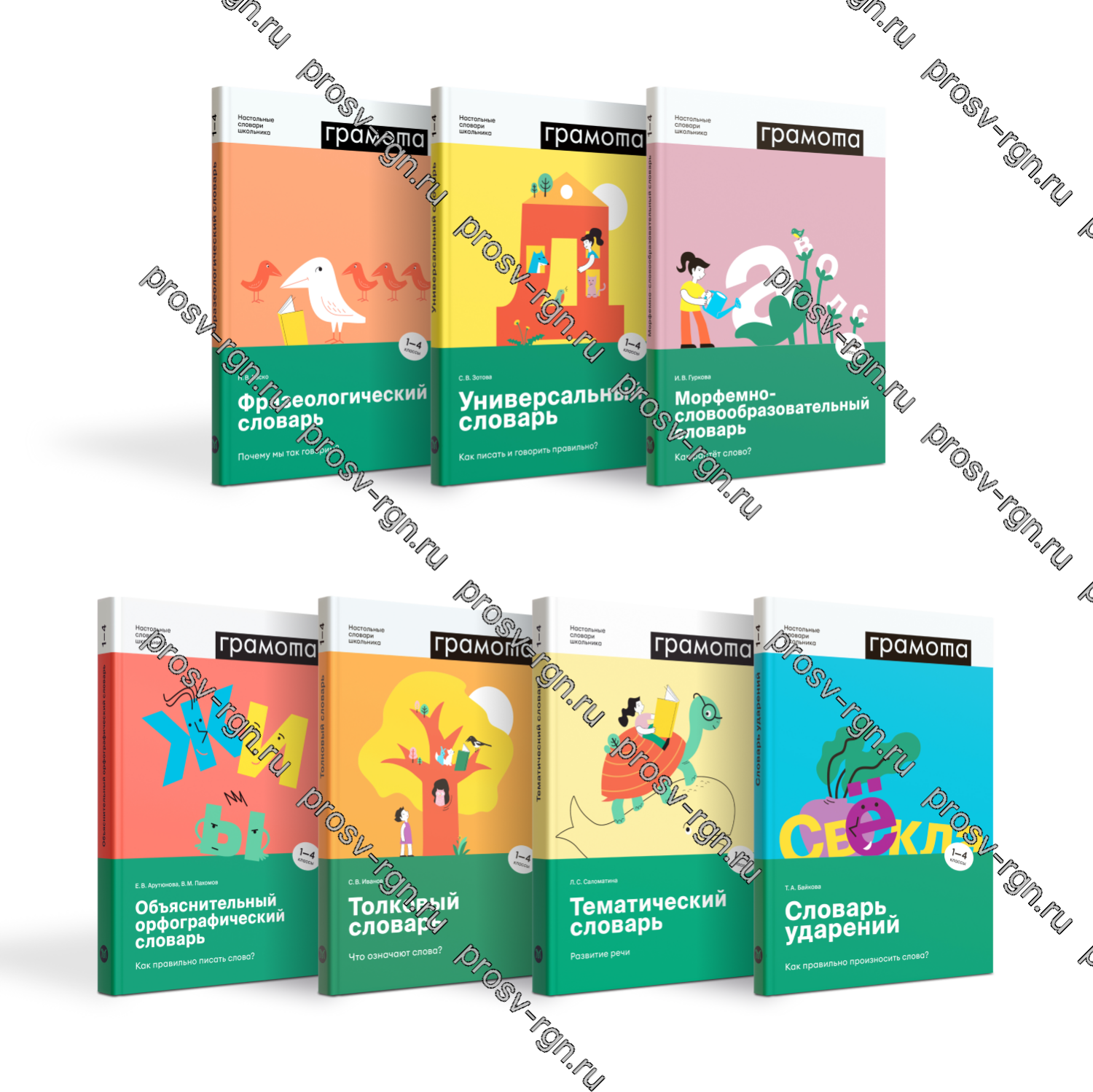 Печатные справочные издания содержат оптимально структурированную и адаптированную информацию по русскому языку за курс начальной школы, сопровождаются красочными иллюстрациями. Печать офсетная, полноцветная. Интегральный переплет. Адаптированная лексика 6+. В комплекте не менее 7 словарей.