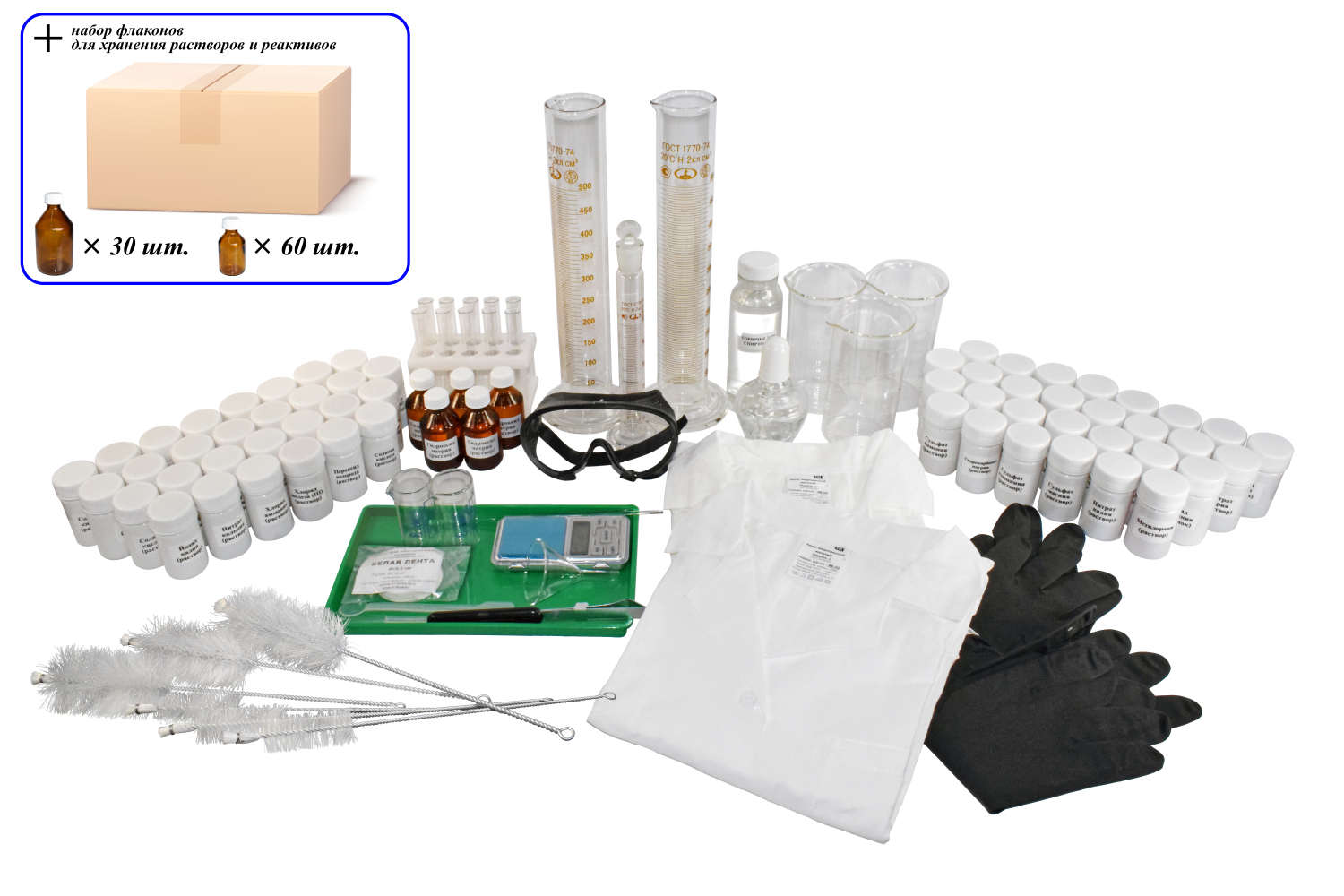 12. Набор флаконов для хранения растворов и реактивов – 15 комплектов по 6 штук;