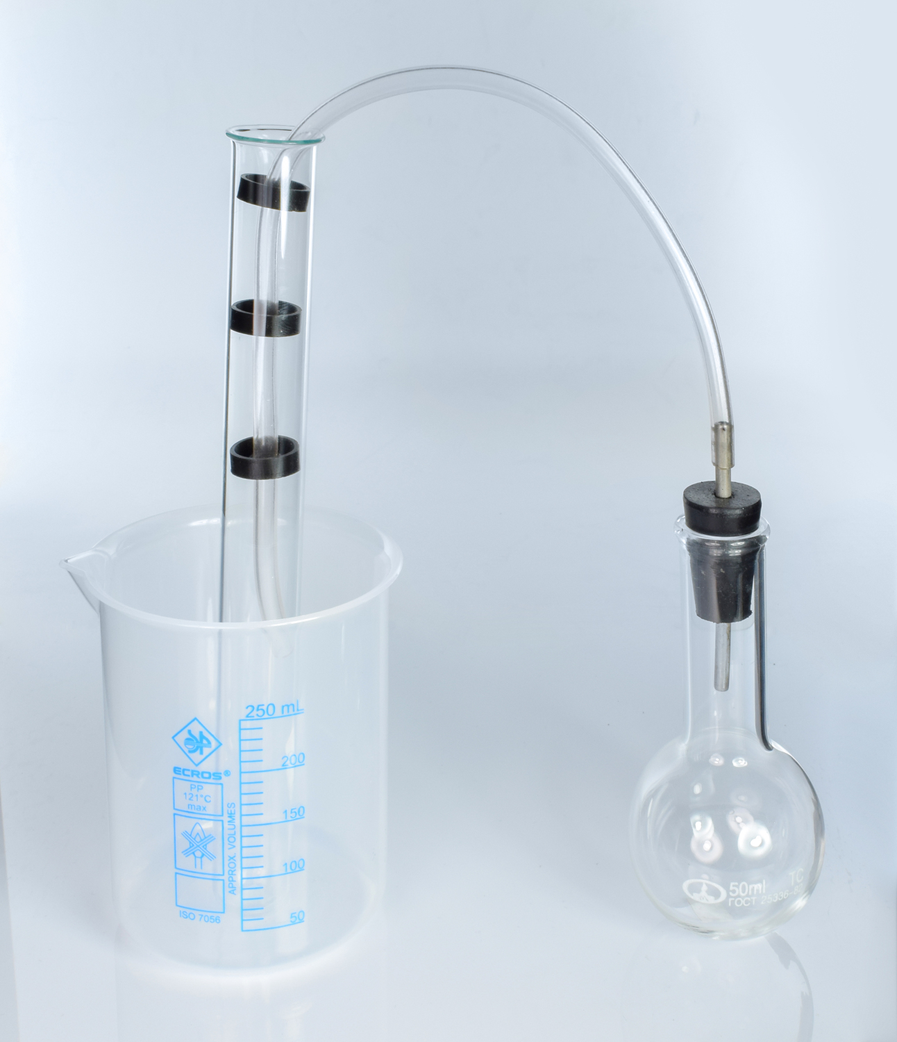 3. Трубка ПВХ с тремя чашками-насадками и резиновой пробкой – 1 шт.;