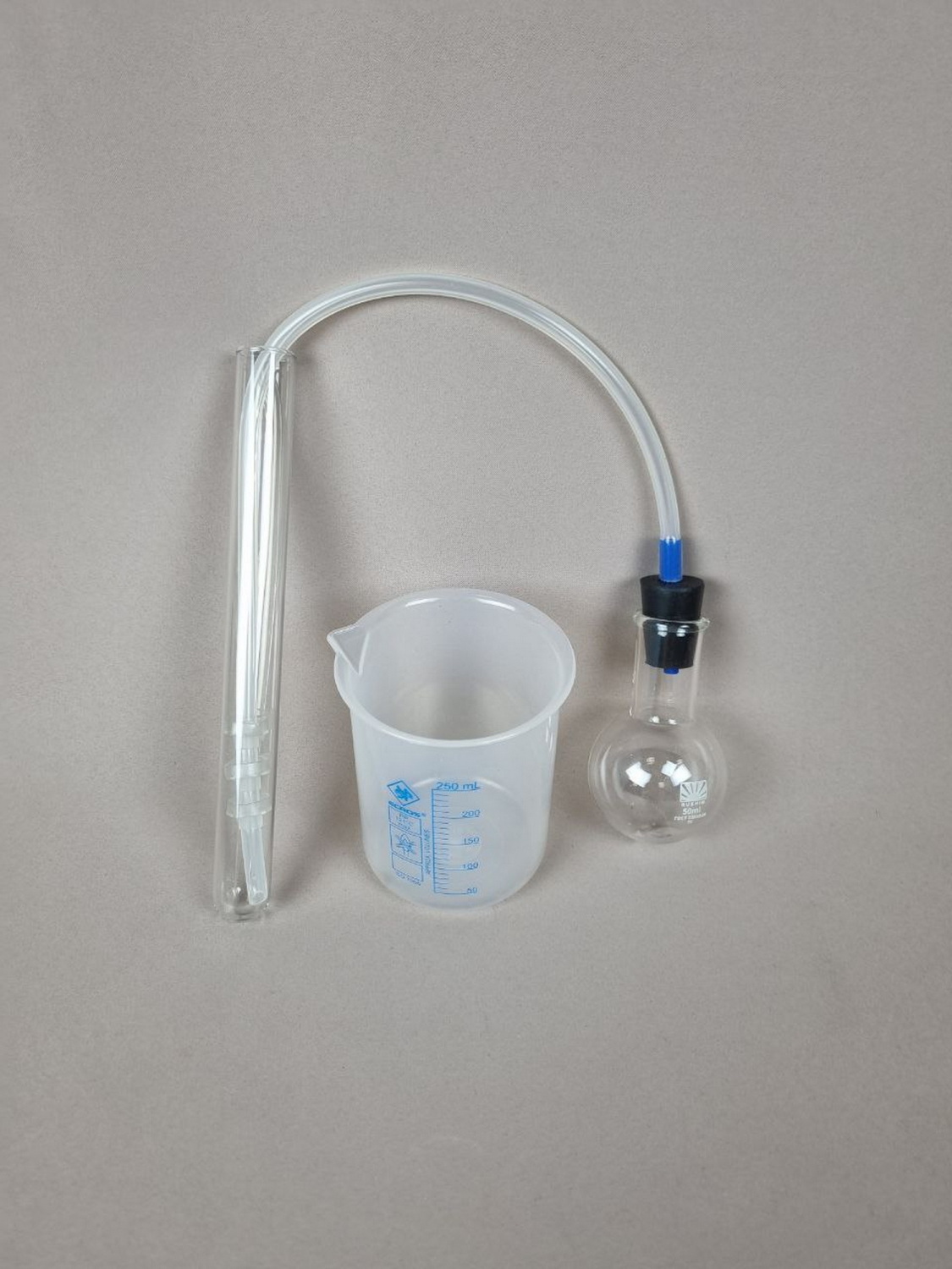 Предназначен для использования на практических занятиях при изучении тем "Алканы" и "Сложные эфиры", в частности, для проведения ученического эксперимента по синтезу бромэтана и этилацетата. Комплектность включает: колба круглодонная 50 мл – 1 шт., пробирка 21х125 – 1 шт., трубка ПВХ с тремя чашками-насадками и резиновой пробкой – 1 шт., стакан – 1 шт.