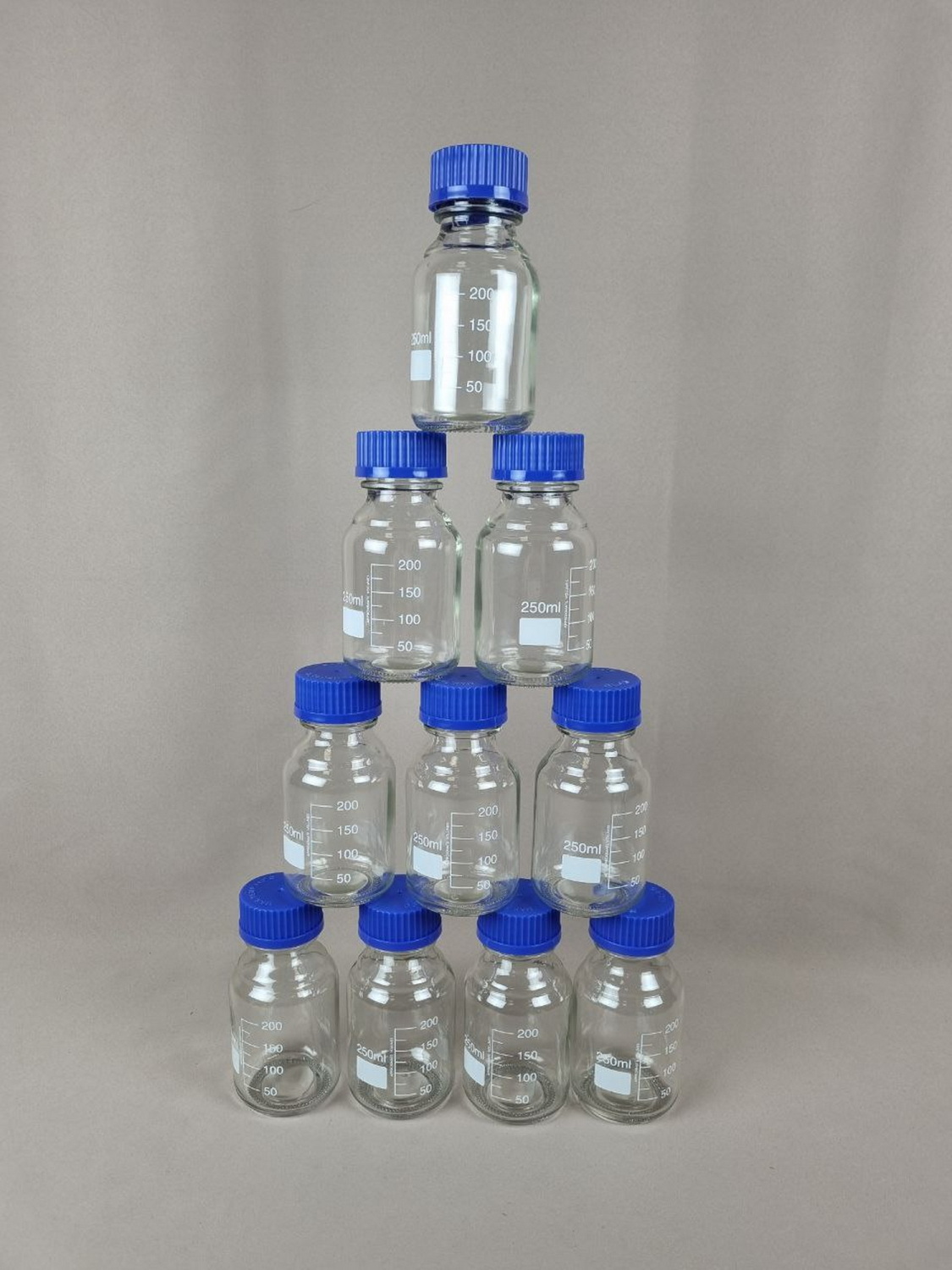 Содержит 10 банок для реактивов с закручивающимися крышками. Объем банок 250 мл.