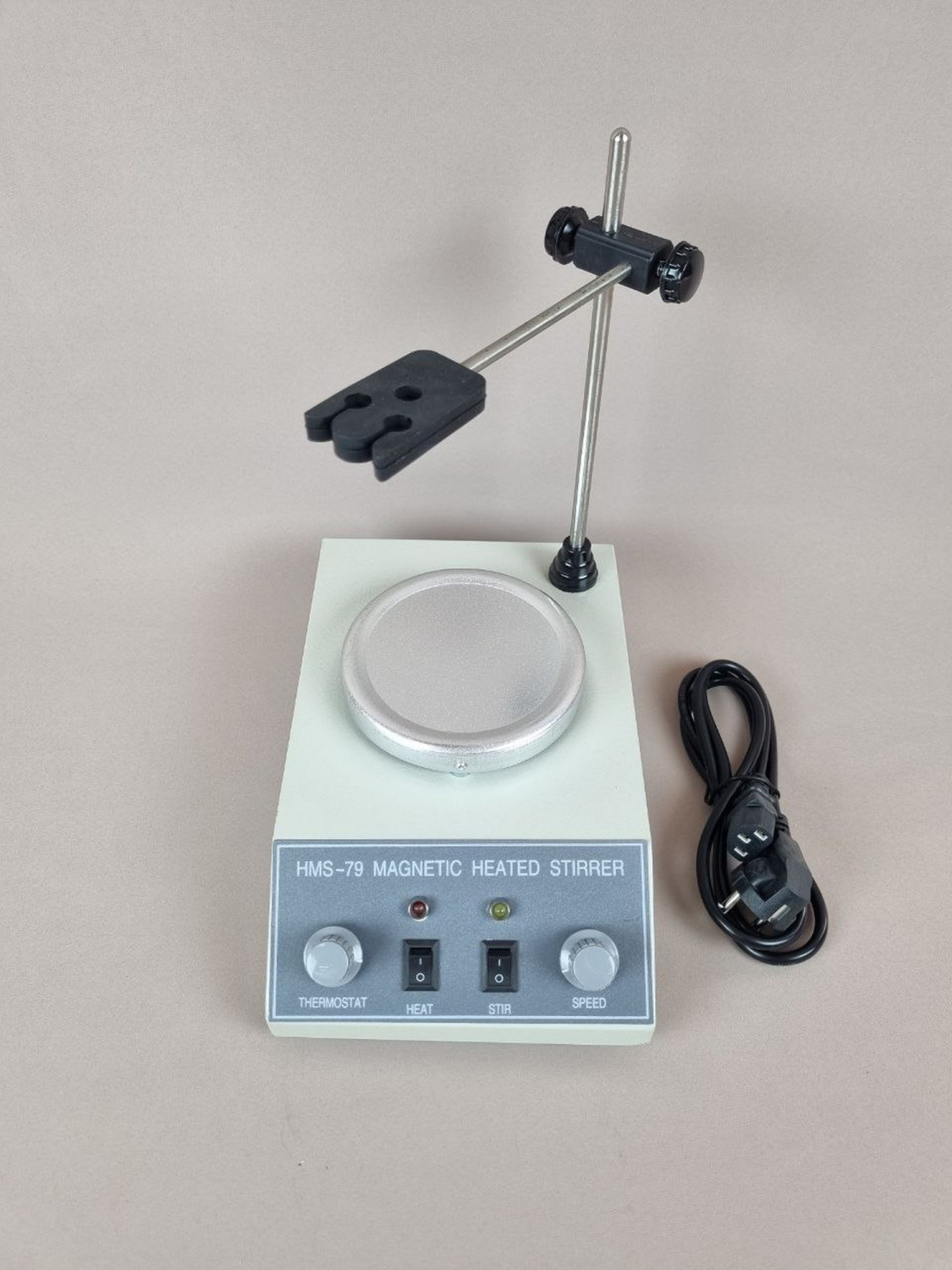 Предназначена для перемешивания раствора путем вращения магнитом металлической магнитной мешалки-якоря. Объем перемешивания – 1000 мл. Питание – 220 В. Подогрев: 150 Вт. Регулируемое количество оборотов в минуту: в диапазоне от 0 до 2400.