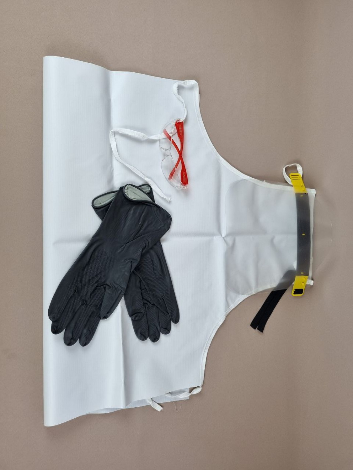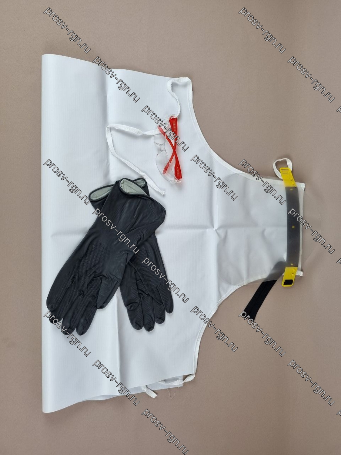 В комплект входят: защитные очки, фартук ПВХ, перчатки прорезиненные, маска-щиток.
