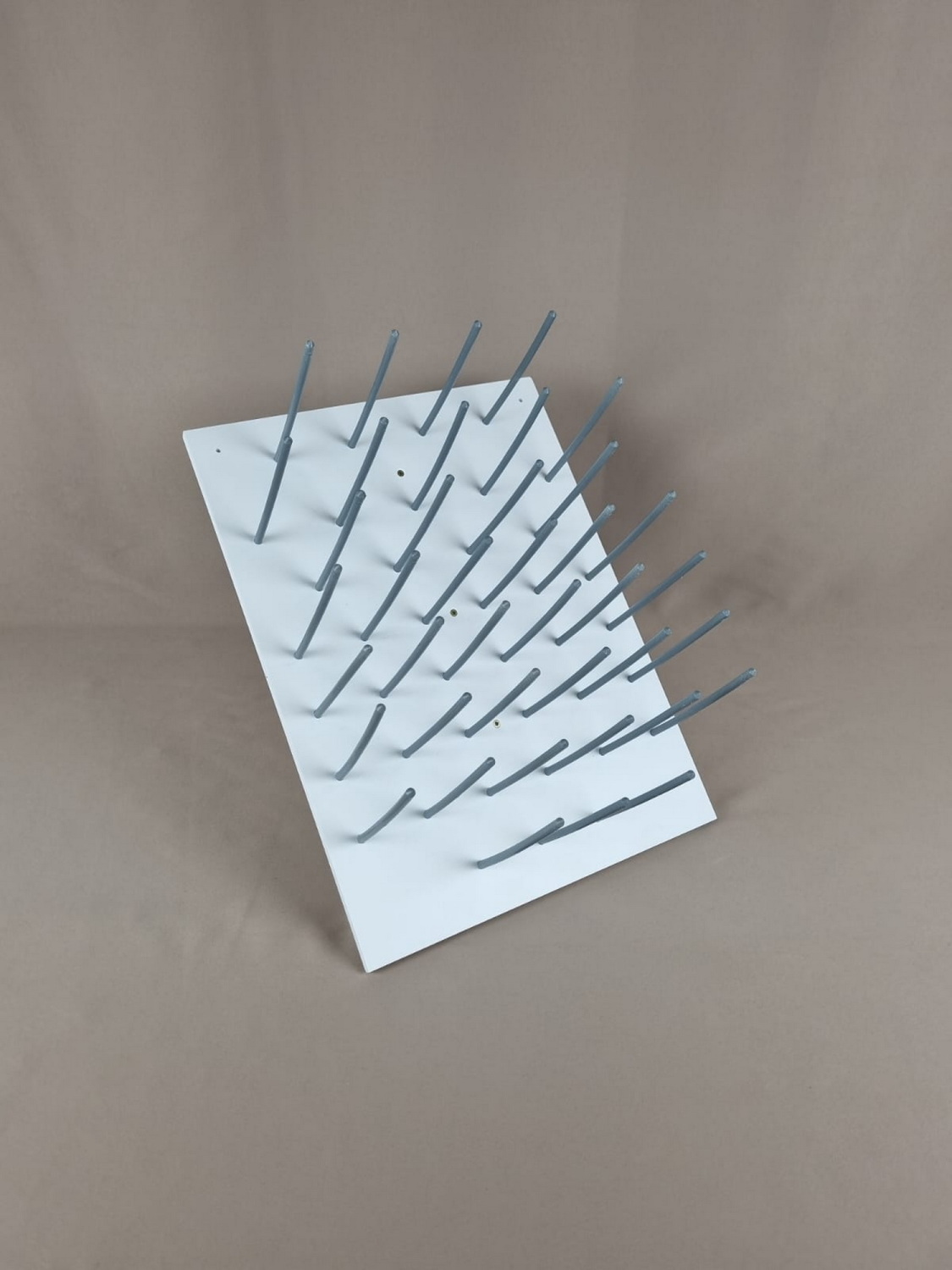 Панель имеет 40 отверстий, в которые вставляются держатели для посуды (крючки). Комплектность следующая: доска – 1 шт., крючки – 40 шт. Доска имеет возможность установки на вертикальную и горизонтальную поверхность.