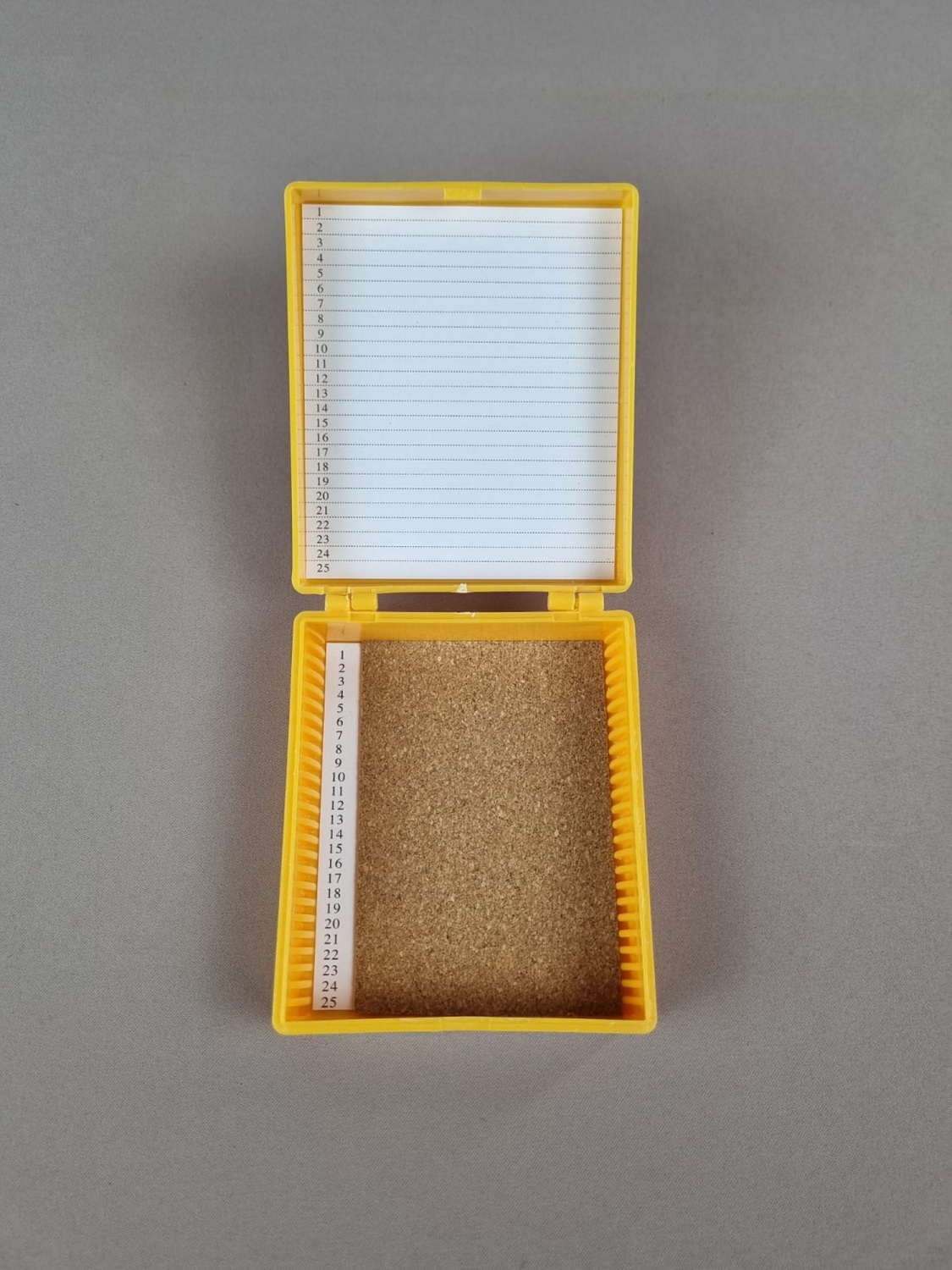 Предназначен для хранения предметных стекол. Вместимость 25 предметных стекол.