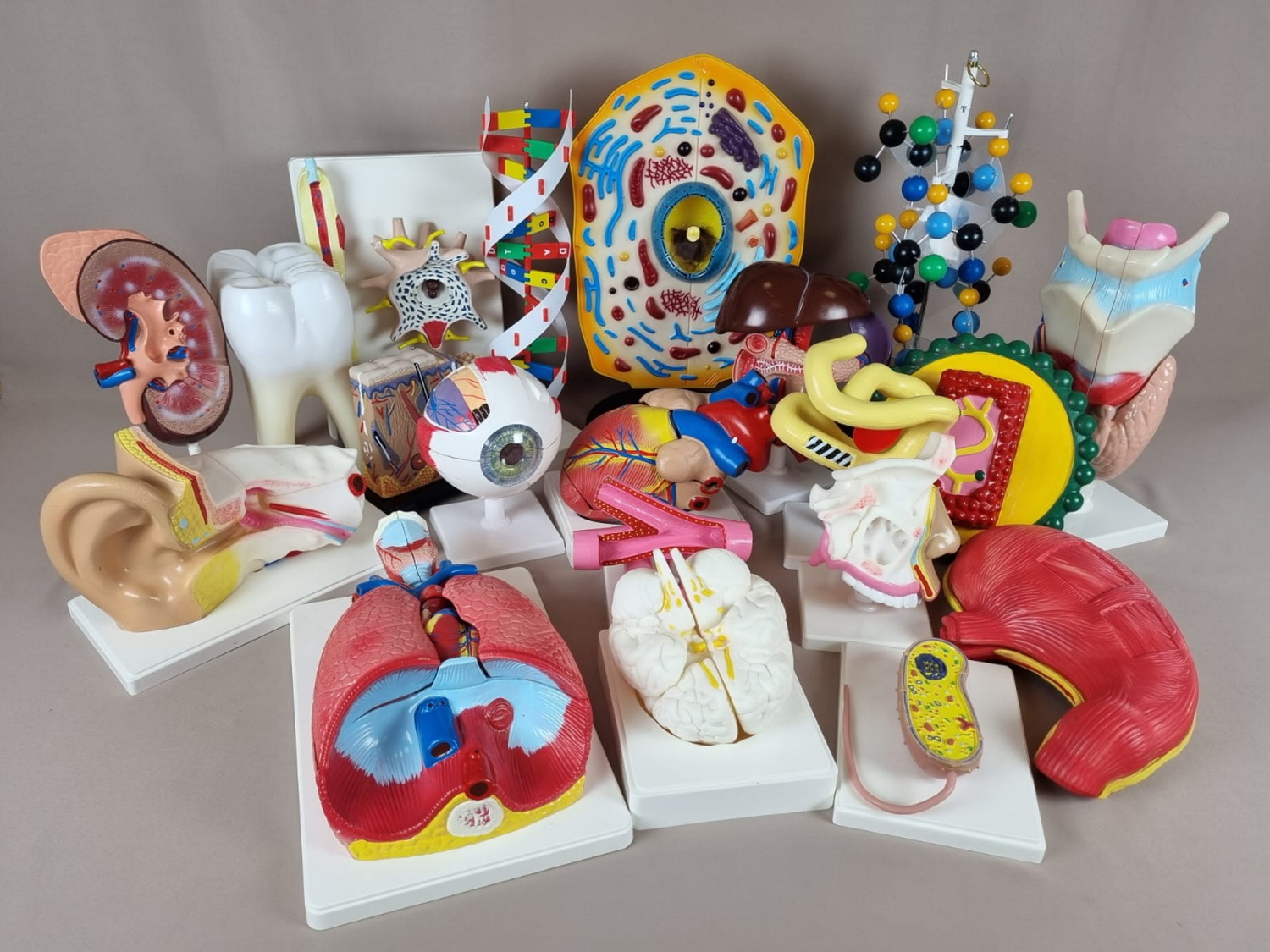 16) Модель "Здоровые и поврежденные сосуды" предназначена для использования в общеобразовательных учреждениях на уроках общей биологии, в качестве демонстрационного пособия при изучении курса Анатомии, темы «Кровеносные сосуды». Объемная модель состоит из 2 частей и представляет собой участки артериальных кровеносных сосудов, которые выполняют функцию обогащения кислородом крови. Съемная модель, которая изображает артериальную вилку с поперечным разрезом артерии и легким артериосклеротическим отложением, крепится на металлический штырь, расположенный на подставке. Несъемная модель закреплена на подставке и изображает артерию с полной закупоркой сосуда, имеет съемную часть. Модель предназначена для демонстрации изменения внутри кровеносных сосудов, вызванные артериосклерозом: от сосудов с незначительными бляшками до полного забитого сосуда; 17) Модель "Бактерия" предназначена для использования в общеобразовательных учреждениях, в качестве демонстрационного пособия в курсе общей биологии по разделу «Строение и функции клеток». Модель неразборная, изготовлена из пластмассы. На модели представлены следующие детали строения: 1. Клеточная оболочка; 2. Жировые капли; 3. Цитоплазматическая мембрана; 4. Полисахаридные гранулы; 5. Нуклеотид; 6. Рибосомы; 7. Цитоплазма; 8. Пили; 9. Жгутик; 10. Мезосомы.; 18) Модель "Кожа человека" предназначена для использования в качестве демонстрационного пособия при изучении курса Анатомии, темы «Кожа. Строение и функции кожи». Модель неразборная, изготовлена из пластмассы и закреплена на подставке. Модель позволяет рассмотреть внешнее и внутреннее строение кожи человека. На модели выделены следующие детали: 1. Эпидермис; 2. Дерма; 3. Рецепторы кожи; 4. Подкожна клетчатка; 5. Артерия; 6. Вена; 7. Жировая ткань.;