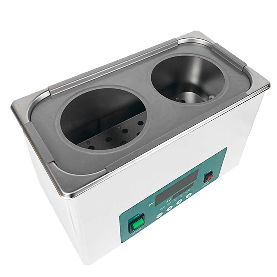 Система из 3-х концентрических стальных колец позволяет размещать в ванне различные колбы объёмом до 1 л, стаканы, чашки для выпаривания и т.д.;