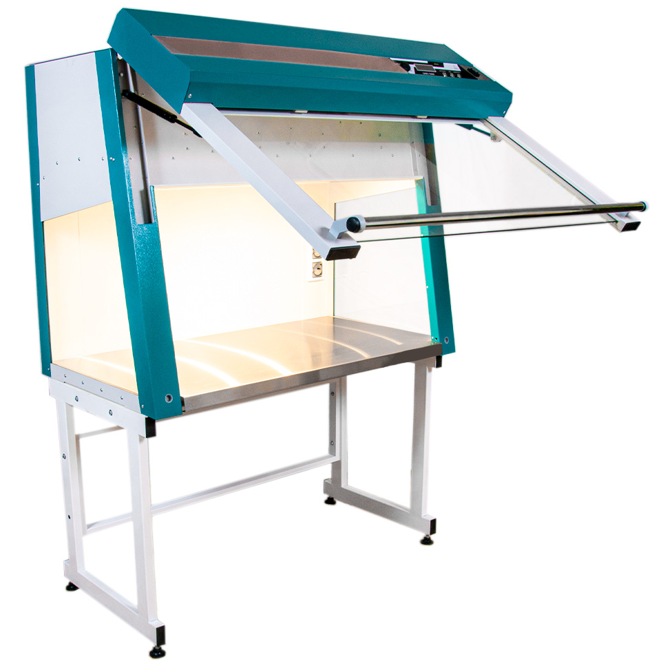 Для работы бокс нужно установить на металлическую подставку (приобретается отдельно) или на лабораторный стол.