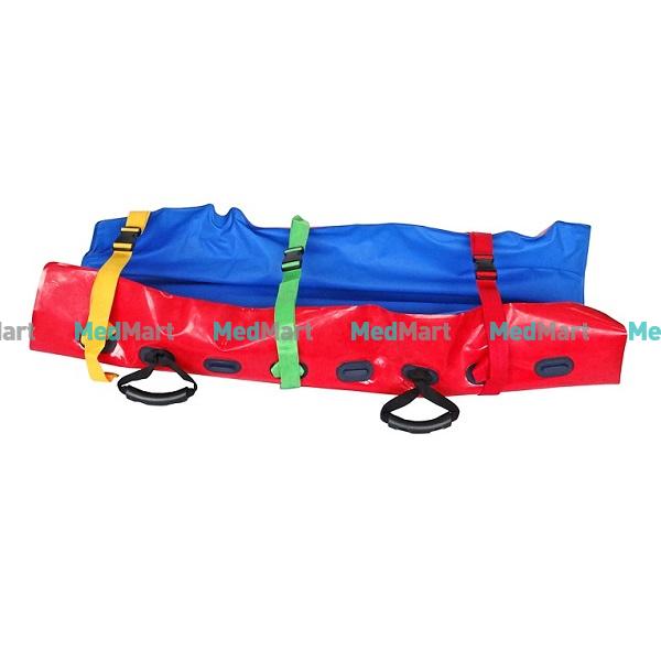 Вакуумный иммобилизационный матрас, предназначен для оказания помощи детям. Обеспечивает полноценное обездвиживание тела при серьезных травмах позвоночника, костей таза, обширном поражении нижних или верхних конечностей. Конструкция состоит из 4 больших камер, разделенных на 52 малых. Рентгенопрозрачность позволяет проводить обследования без перемещения пациента на стол. Комплектация: насос механического типа, стропы, пряжки, ручки с прорезиненным слоем и сумка-рюкзак.