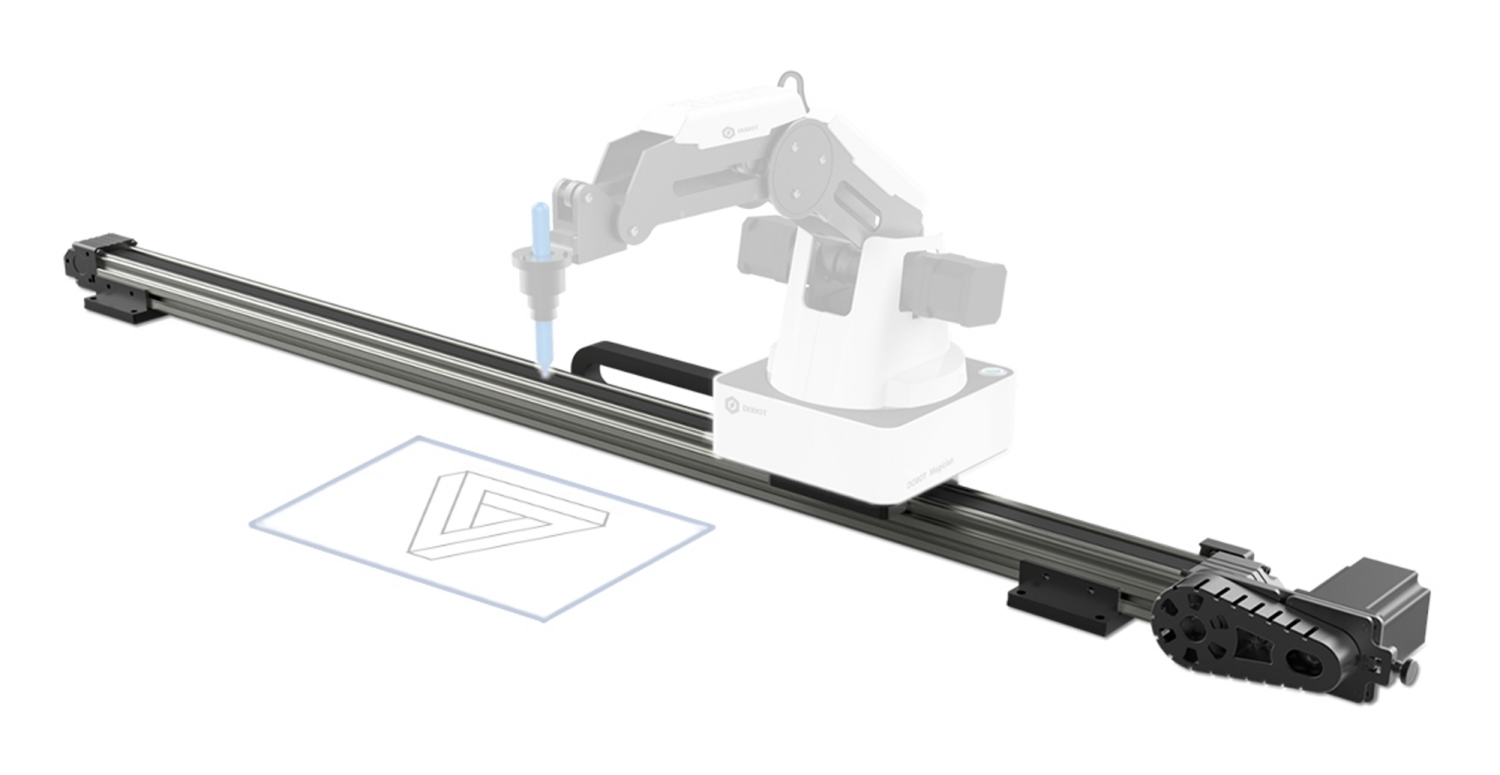 Комплект линейных перемещений для базового набора учебного манипулятора обеспечивает увеличение рабочей зоны в несколько раз, позволяя расширить возможности моделируемой производственной линии или увеличив площадь для выполнения рисования и лазерной гравировки.