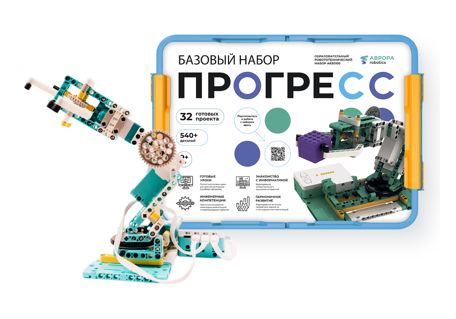 В состав решения АВРОРА Robotics Прогресс входят 8 учебных модулей, разработанных для использования на уроках информатики, технологии, математики и окружающего мира.
