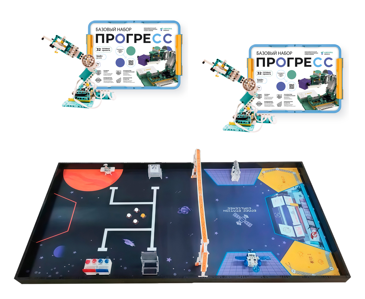3. Дополнительный ресурсный набор, расширяющий возможности по подготовке команд учеников 5–9 классов к робототехническим соревнованиям. В этот набор входит все, что нужно для организации увлекательного соревнования роботов прямо в классе: дополнительные детали для сборки функциональных мобильных роботов, новые электронные компоненты и большое тренировочное поле.